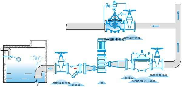 500X泄压/持压阀主要用于消防或其他供水系统中,以防止系统超压或维持消防供水系统的压力。消防泵关闭后还可以减小水锤的冲击。也用于大型供水系统的水锤装置。并且阀门控制系统的进口处装有一个清洁滤网,利用流体特性,使比重较大、直径较大的悬浮颗粒不会进入控制系统,确保系统循环畅通无阻,使阀门能安全可靠地运行。系统动作平稳、强度高、使用寿命长。