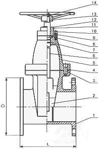 6 | 阀杆 | 不锈钢 | 13 | 手轮 | 铸铁 |