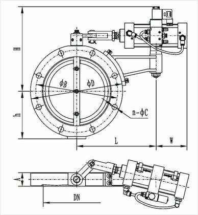 GIQ型系列气动高真空蝶阀以压缩空气为动力,通过电磁换向阀改变气路方向,执行气缸推动,使固定在转动轴上的阀板旋转90°实现阀门的开启和关闭。